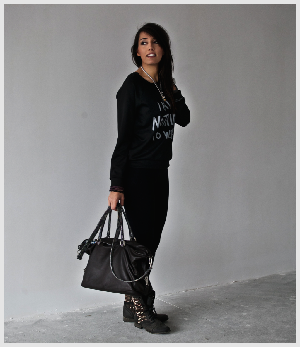 Czy ktoś kiedyś powiedział, że ubrani cali na czarno musi wyglądać nudno i zupełnie nieciekawie. Wręcz przeciwnie, cała magia polega na dobrze kroju, faktur, a przede wszystkim dodatków. To stój stworzony szybko, ale patrząc teraz na niego nic bym nie zmieniła, wręcz przeciwnie. Rewelacyjne czuję się w takich rozwiązaniach, a przede wszystkim wygodnie 🙂