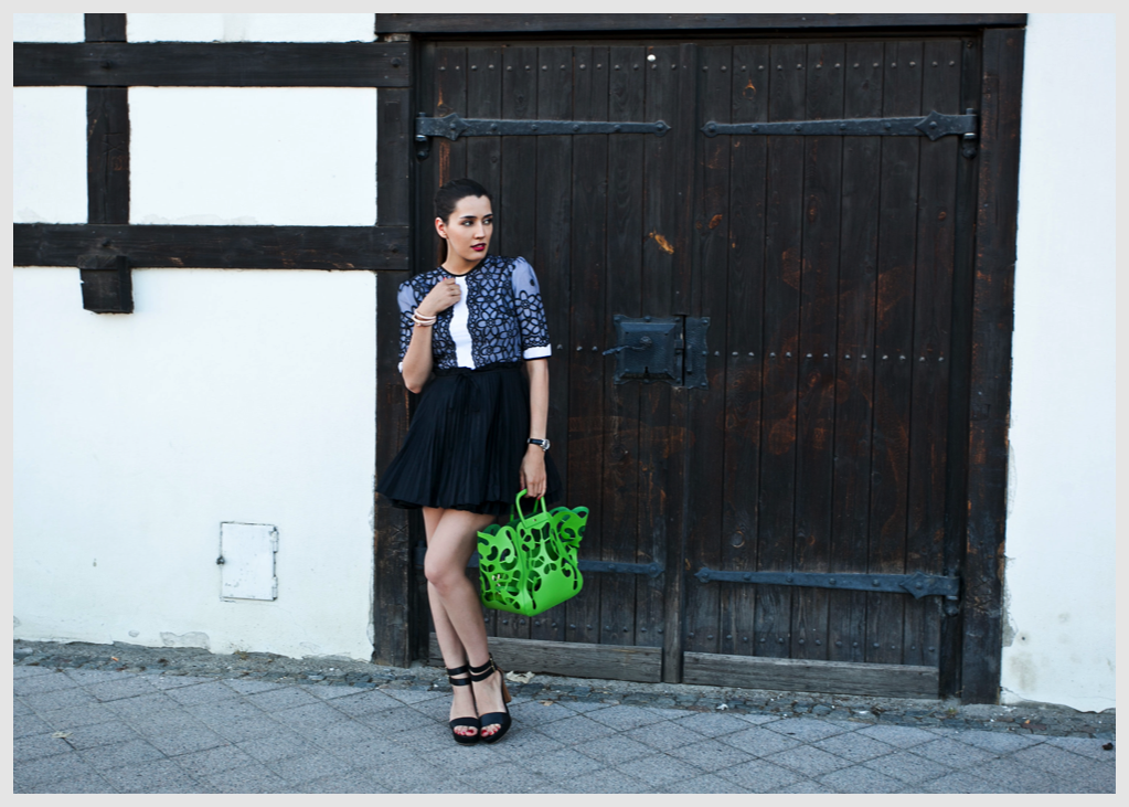 Sierpień 17, 2014 at 7:09 pmrzeczywiscie czarno-białą stylizacje nie trudno stworzyc – wszak od malego kazda z nas miala w szafie taki zestaw, bo tak trzeba sie bylo odstawic dwa razy w roku przynajmniej na poczatek i zakonczenie roku szkolnego 🙂 Ale sztuka jest umiejetnie ta czarno-białą stylizację rozegrać. Fajnym rozwiazaniem jest np. tak jak u Ciebie przełamanie jakimś mocnym kolorem (gratulacje za pomyslowe i fajne polaczenie faktury bluzki i azurowej formy torby). Mysle ze jeszcze wieksza sztuka byloby rozegrac – np. z pomoca fasonow – takie czyste bialo-czarne polaczenie. I mysle ze u Ciebie nawet jakby nie bylo tej zielonej torebki to efekt bylby ciekawy.