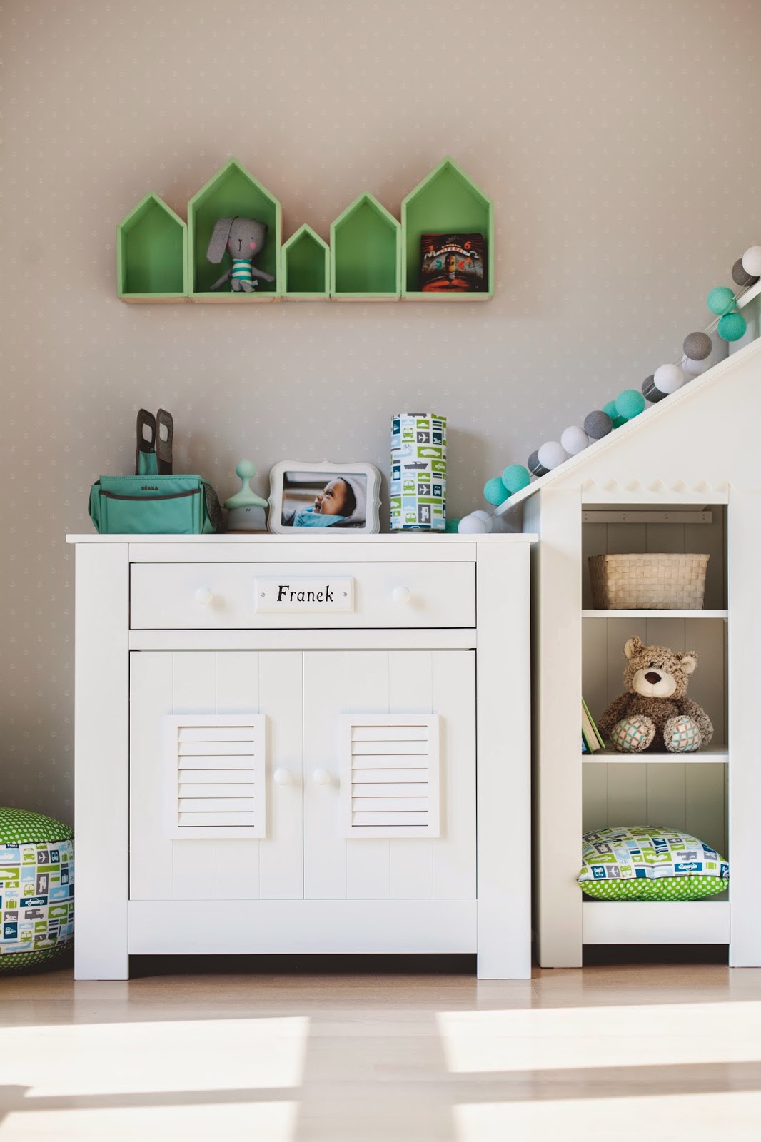 Zanim pokój zrobił się taki jaki jest czyli miętowy- pastelowy rozważałam kilka opcji, przymierzałam dodatki, różne kolekcje np. samochodową. Mój mąż oczywiście umierał ze śmiechu. Przecież mężczyzna nie rozumie czegoś takiego… A artystki tak mają muszą każdy szczegół dopracować:)