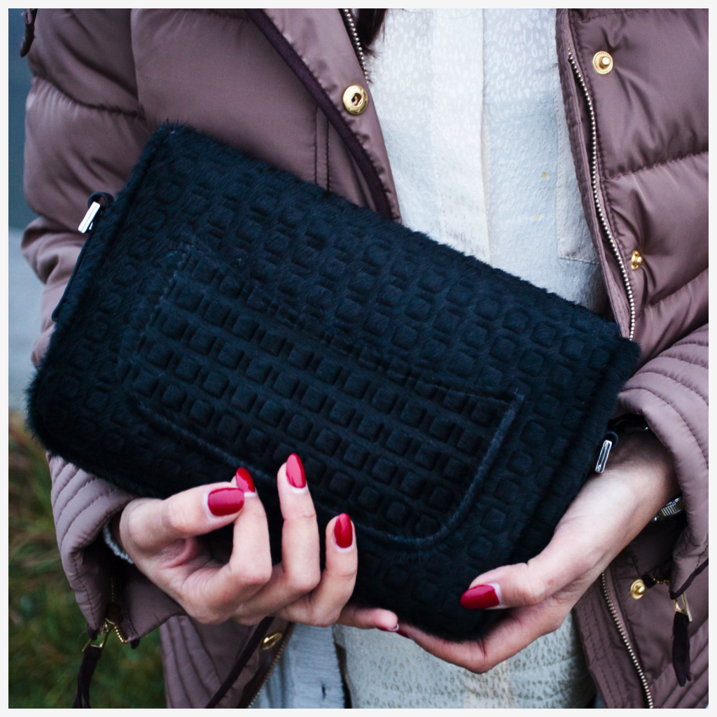 Prawdziwa zima zawitała na dobre u nas w Trójmieście, śnieg, ujemne temperatury tymczasem w Krakowie mieszkańcy cieszą się słońcem i 6 stopniami. Jednak jakby tego nie interpretować, rozważać odpowiedź jest jedna- w końcu nadeszła prawdziwa zima. Pora lecieć do szafy po ciepłą kurtkę, bądź zaopatrzyć się w taką. Ja przez przypadek znalazłam idealny model (wyjątkowo ciepły) w internecie, wszyscy się nią zachwycają, a do tego kosztowała takie grosze.. Do udanego łupu dołączyły skórzane wysokie kozaki, których tak długo szukałam. Elegancji dość sportowej i luźnej stylizacji dodała torebka na długim pasku z pikowanego futra. Futrzane torebki to hit tego sezonu, jeśli zależy Wam na wyjątkowo wykwintnej sztuce- polcam torebkę od projektantki. W środku skórzana, na zewnątrz prawdziwe futro. Myślę, że koleżanki Wam jej pozazdroszczą.. 🙂