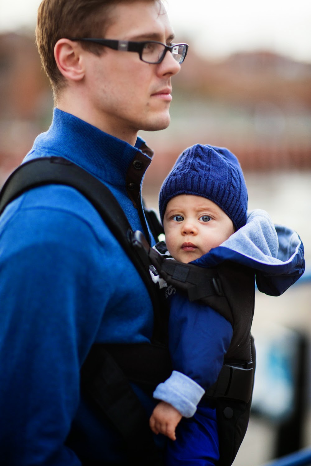 Teraz Franek ma 8 miesięcy, kocha patrzeć, poznawać otaczający go świat. Szczególnie przyjemnie jest gdy czuje zapach rodziców, a wszystko widzi z innej perspektywy, to przecież ciekawsze niż wózek 🙂