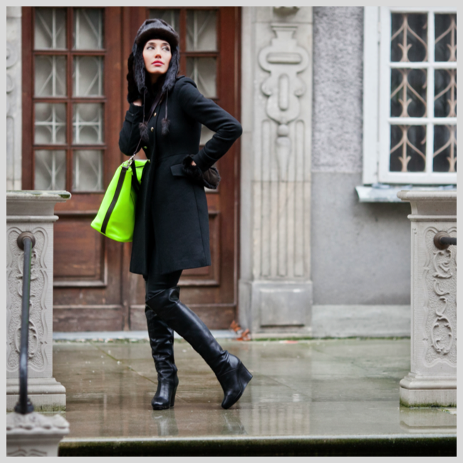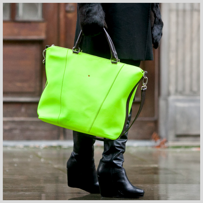Uwielbiam wielkie torby, proste, a jednak zadziwiające swoją elegancją. Mój neonowy model, mieści notatki na uczelnię, kosmetyczkę i myślę, że dwie chihuahua’y by jeszcze weszły. Do wszystkiego, ciepła czapa i rękawice, bo zrobiło się naprawdę bardzo, ale to bardzo zimno…