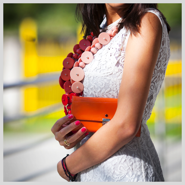 Ostatnio popadłam w kompletny burgundowy szał oraz fascynację jesiennymi stonowany zgaszonymi kolorami. Dzisiaj zaświeciło słońce stąd też nabrałam ochoty na outfit w ożywionych barwach, zostając wierną obecnym juz trendom. W sezonie jesień zima bardzo modny będzie kolor kobaltowy oraz pomarańczowy jak również czerowny jednym słowem język płomieni. W związku z czym postanowiłam to wszystko razem połaczyć i stworzyć unikalną stylizację. Korale, które mam na sobie mają bardzo dziwny kształt są trochę cieżkie pomimo iż wykonane zostały z plastiku. Jednak zadziwiają formą i unikatowością . Nigdzie ich nie widziłam poza sklepem w którym je nabyłam. Czasami warto kupić coś co będziemy miały tylko my i nikt inny w najbliższym otoczeniu. Jak już wcześniej pisałam “Diabeł tkwi w szczegółach”. Nie musi to być naszyjnik z super drogiego butiku, czasem możemy kupić coś na bazarku za granicą, na jarmarku bądź po prostu rzadkie rękodzięło.
