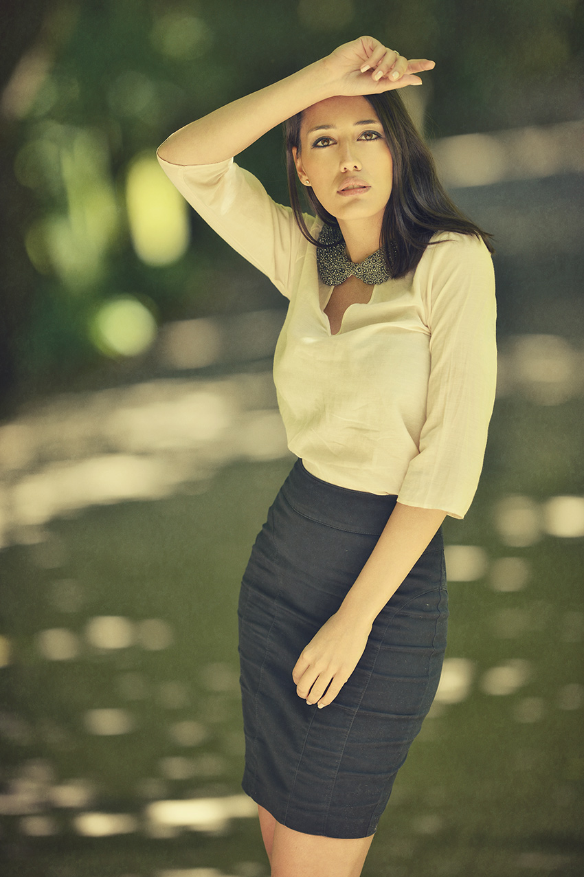 W przypadku prezentowanych zdjęć było inaczej, ja i mój fotograf byliśmy sami, a sesja musiała powstać, tak się czasem zdarza, a powodów jest wiele, a korki, a przypadki losowe, a brak terminów itp. itd. i zdekompletowana ekipa. Wtedy trzeba stanąć na wysokości zadania, człowiek łapie się gorączkowo za głowę, oddech przyspiesza, tysiące myśli biją się w głowie, po krótkim wybuchu paniki spadam na ziemię staję się w miarę spokojna i opanowana i zaczynam coś tworzyć. Zawsze było to swojego rodzaju wyzwaniem, bo przecież wizażysta tyle się uczył, miał przecież większy kufer z kosmetykami, pędzlami niż niektórzy ojcowie pudełka na narzędzia, a stylista miał na pewno coś ciekawego przy sobie. Tamtego dnia udało mi się zadziałać co możecie sami zobaczyć i ocenić.