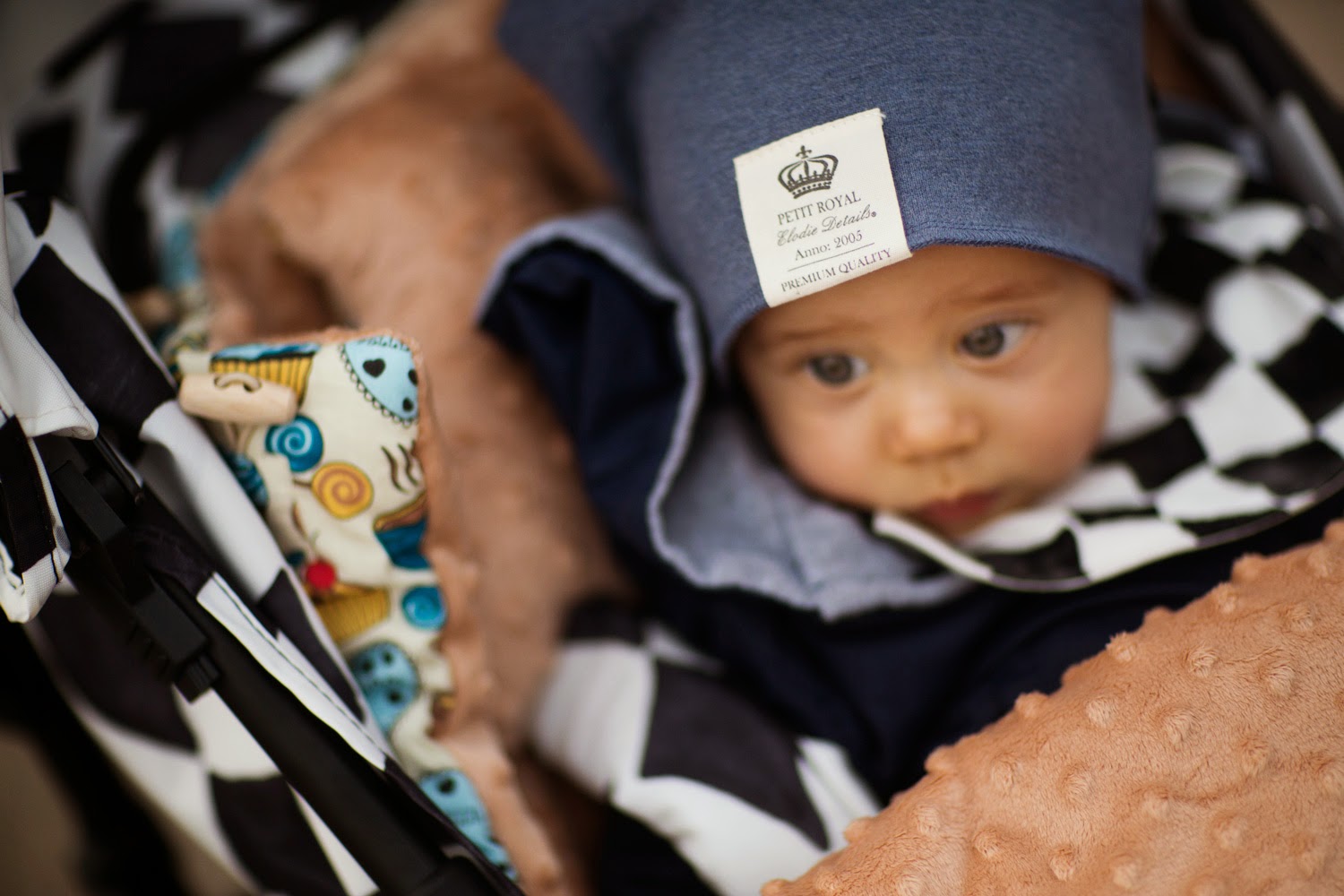 Na prezentowanj sesji zdjęciowej, widać także dodatki, które są dla mnie niezbędne i niezastąpione na jesienne spacery. Śpiwór w ciasteczka niepowtarzlany design. Jest rewelacyjnie uszyty, bardzo funkcjonalny. Zapinany na zamek, dziecko może nawet wyciągnąć nóżki. Dodatkowo można zaczepić poduszeczkę kokardkę, żeby podczas snu było miękko, miło, a głowka nie latała. Śpiworek nadaje się do gondoli na zimę czyli dla noworodka również 🙂